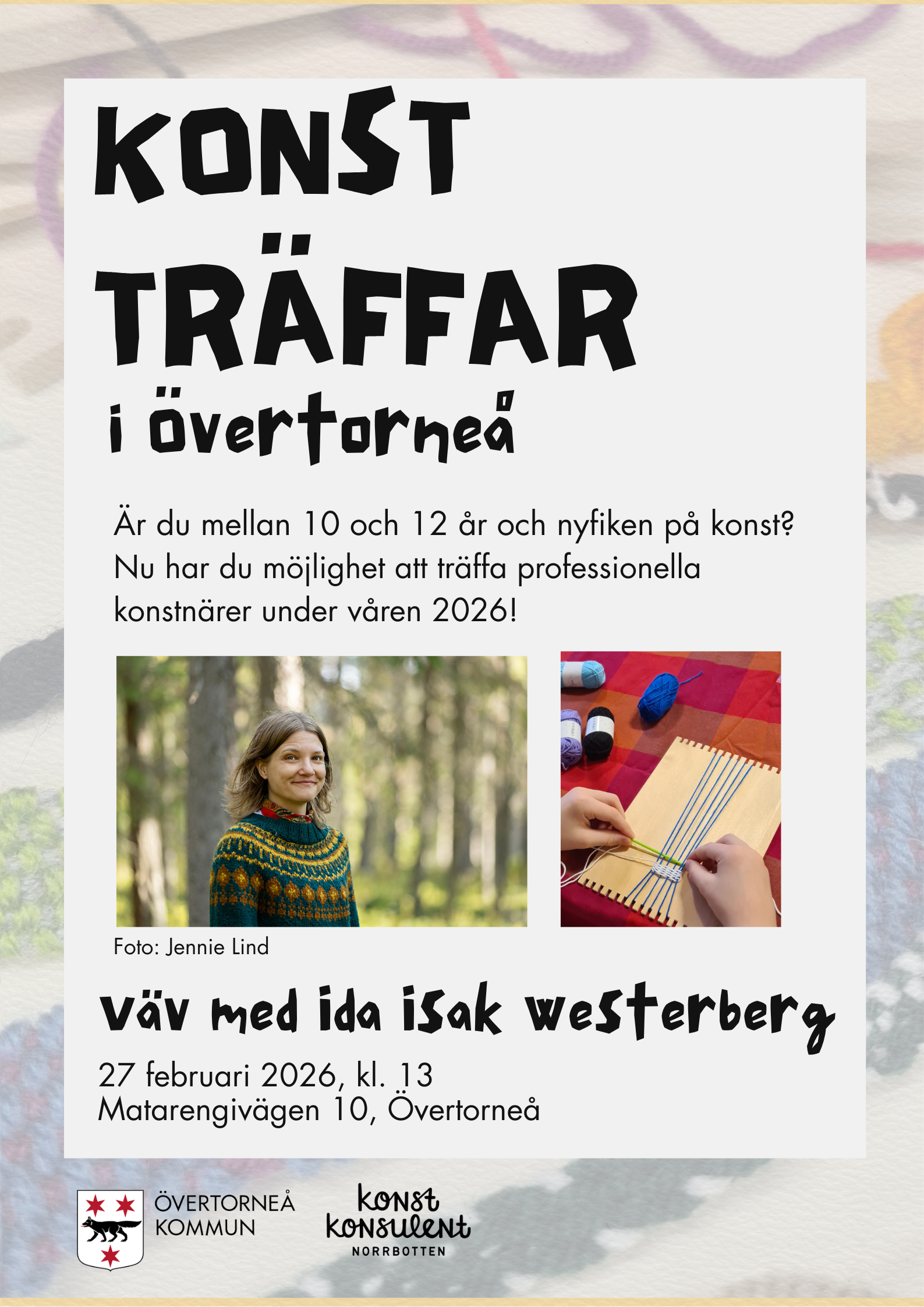Under våren har konstkonsulenten, tillsammans med Övertorneå kommuns kultur- och fritidssamordnare, anordnat tre träffar mellan mellanstadieelever och professionella konstnärer. Först ut är konstnä...